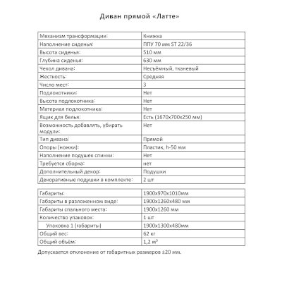 Диван Латте (Аквилон) продается в интернет-магазине mebelin-dubna.ru по цене 28 547 руб. Есть доставка по Дубне и Московской области. Возможность подъема на этаж и сборки уточняйте у менеджера по телефону 8(800)505-27-11.